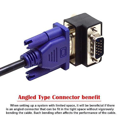15ピンモニタ映像信号接続用の小型エルボーVGAコネクタ、HD 15 VGA 90度アダプタにネジを備え、非常に強固な接続を実現