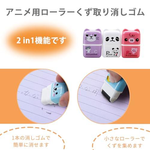 【ローラー消しゴム】子供たちに興味を持ってもらうために、この子供用のかわいい消しゴムは安全で無臭のゴム素材でできており、消しゴムはかわいい形のデザインはの子にとても人気があります。消しカスクリーナーとシンプルな消しゴムが一つになった、ローラー付き消しゴムのセットです。ミニサイズでよく消える、小学生や女の子などの小さなお子様にも使いやすい文房具となっております。