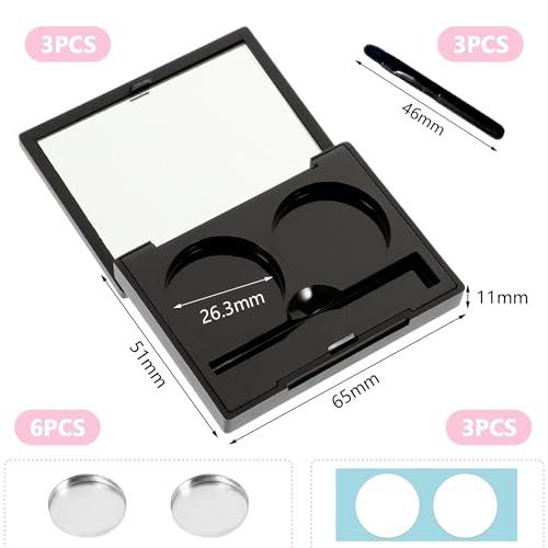 メイクパレット アイシャドウケース 空 3個入 アイシャドウパレット 旅行用アイシャドウコンテナ 空のアイシャドウ パレット 空 リップパレット 手作り diy アイシャドウボ 詰め替え 小分け容器 空ケース コスメ用詰替え容器 鍋 ミラー付き 粘着紙付き