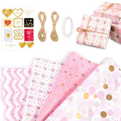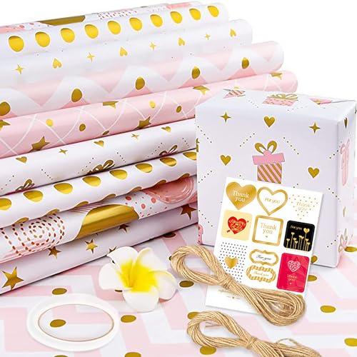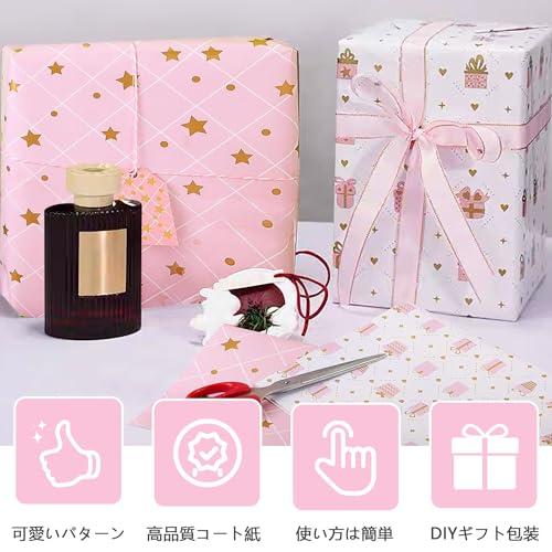 包装紙 ラッピングペーパー 厚手 大判 可愛い 包装紙 お洒落 ギフト包装紙 厚手 大判 誕生日 クリスマス お祝い バレンタインデー ギフト包装 プレゼント ラッピング用品 プレゼント テープ ステッカー付き (6枚 50*70CM)