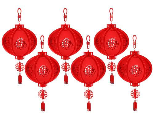 中華 提灯 赤 福 飾り ちょうちん 不織布製 中国風 お掛物 お祝い 雰囲気 ラッキー飾り 吊りランタン お祭り 新年 春節 正月飾り お盆 燈籠 直径30cm 6個セット