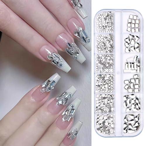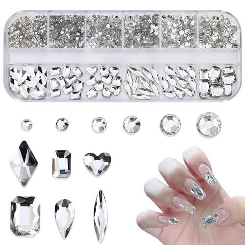 ネイルパーツ ラインストーン ガラスストーン DIYネイル デート 女性 飾り フェスティバル 立体 水滴形 ひし形 ハート キラキラ 大容量セット 箱入り 白 約1130個入り