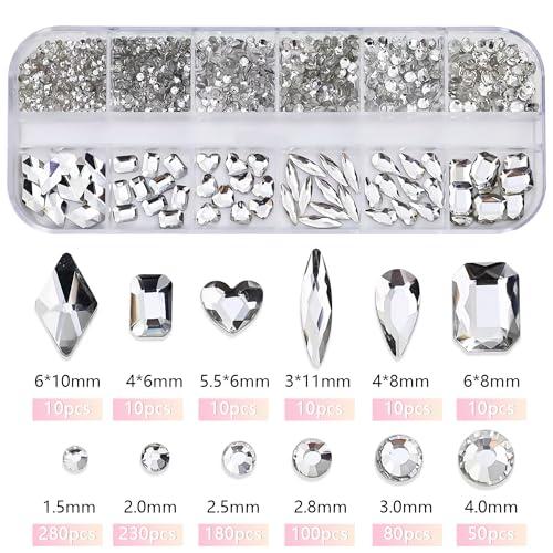 【仕様】サイズ:1.5 mm〜10 mmまでさまざまです;重量:約30g/箱;カラー:白;素材:ガラスラインストーン;入数:約1130個。