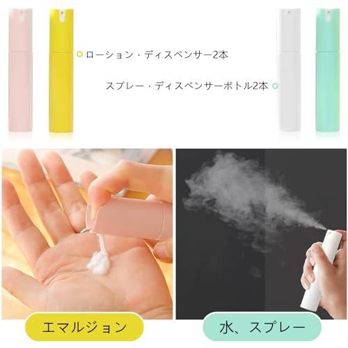 【幅広い用途】小型のポンプ式詰替用ボトルは、ファンデーション、アイクリーム、美容液、化粧水など、さまざまな化粧品や洗面用具に使用できます。小型のスプレーボトルはトナー、メイク落とし、エッセンスウォーター、アルコール