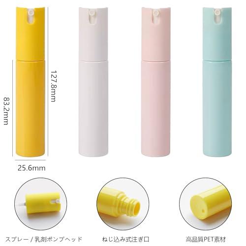 【パッケージ内容】数量:スプレーボトル*2(白+緑)+ポンプボトル*2(黄+ピンク)。 サイズ:12.8cm*2.56cm 容量:30ml 重量:21.9g