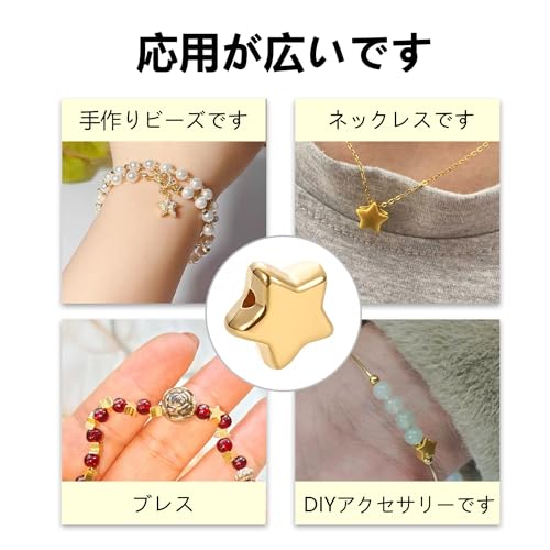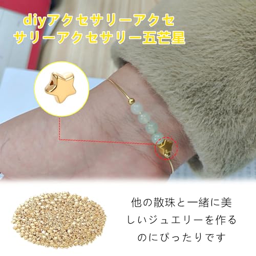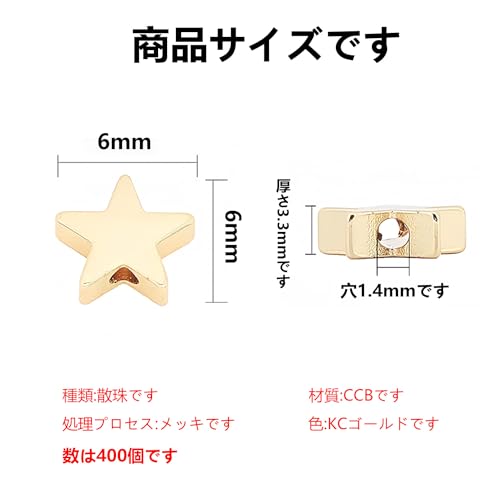 ビーズ パーツ 星 ゴールド 真鍮 400個 ビーズ 星 6mm 金属ビーズ 大穴ビーズ 糸通しビーズ デコ ビーズ ブレスレット ネックレス スター 穴あり ビーズアクセサリーパーツ 手作り素材 ジュエリー作り レディース デコキット DIY飾り物