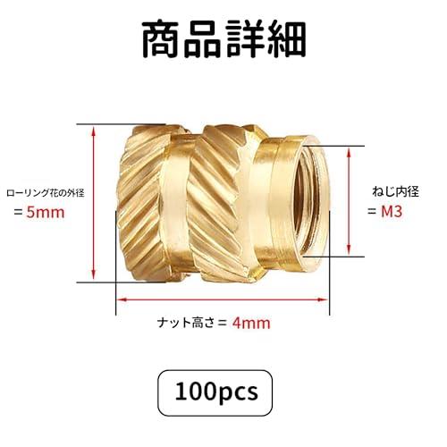 インサートナット 真鍮 ローレットナット M3*4mm*5mm 100個3Dプリント 真鍮ナットインサート3Dプリンター部品またはノートパソコン用 (M3*4mm*5mm) 送料無料