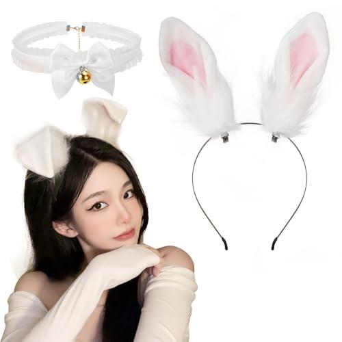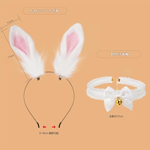 うさ耳 カチューシャ うさぎ耳 うさぎ チョーカー カチューシャ 鈴付き ウサギ コスプレ 仮装 小物 ユニセックス 2点セット 白×ピンク