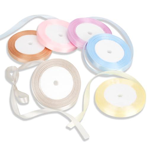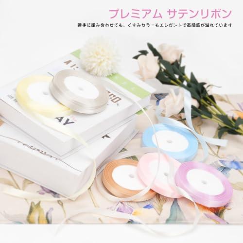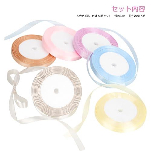リボン 包装 サテンリボン ラッピングリボン カラフル 詰め合わせ 用リボン ちょう結び 手芸 ラッピング 花材 手作り 結婚式 工芸品 6色セット 約22m/巻き (10mm-パステルカラー)