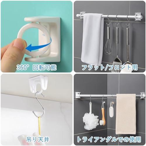 突っ張り棒 受け 穴開け不要突っ張り棒 サポート 粘着テープ 強力 360度回転可能 つっぱり補助 直径2.5cmの突っ張り棒用 キッチン トイレ 部屋の必需品 4個セット