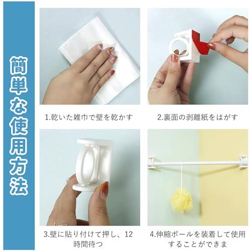 【突っ張り棒 支え取付方法】1.壁を拭く(アルコールで拭くことができる)2.壁が乾いたら、フックを平らに貼り、1-2分押します。3.24時間放置してから使用してください。