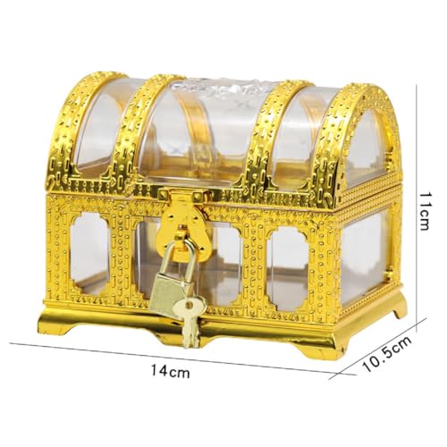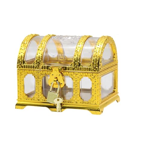 「鍵付き 」ゴールドとクリアの透明素材が光を反射し、立体感を演出します。付属の鍵はゴールドメッキ仕上げで、ちゃんとロックされて貴重品を安全に保管するのに最適で、海賊の宝のような華麗さを演出します。