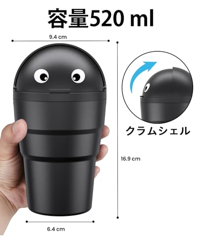 革新的な外観: 2024の新しい車 ゴミ箱 倒れないは見た目が可愛く。実用的な520mlの容量で、小さなゴミを効果的に集めることができます。蓋をすると、かわいいカップホルダーの装飾になります。