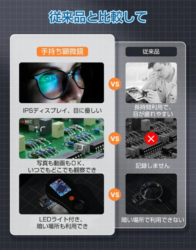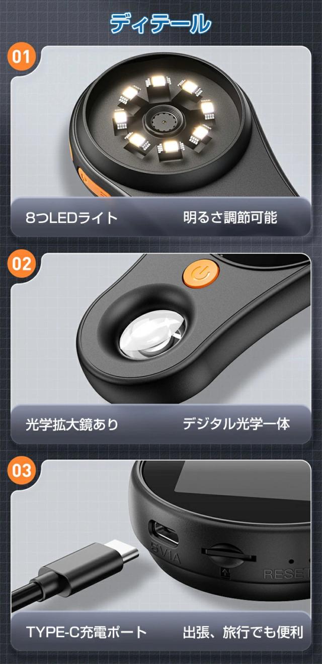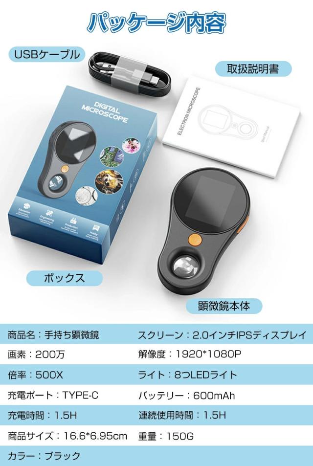 最新型顕微鏡 子供用 デジタル顕微鏡 ハンディ 手持ち顕微鏡 LEDライト付き マイクロスコープ 電子顕微鏡 子ども用 キッズ 2.0インチ 500X拡大 コンパクト 持ち運び便利 知育玩具 自由研究 動物 生物観察 実験室 顕微鏡 クリスマス プレゼント 観察キット ブラック ホワイト