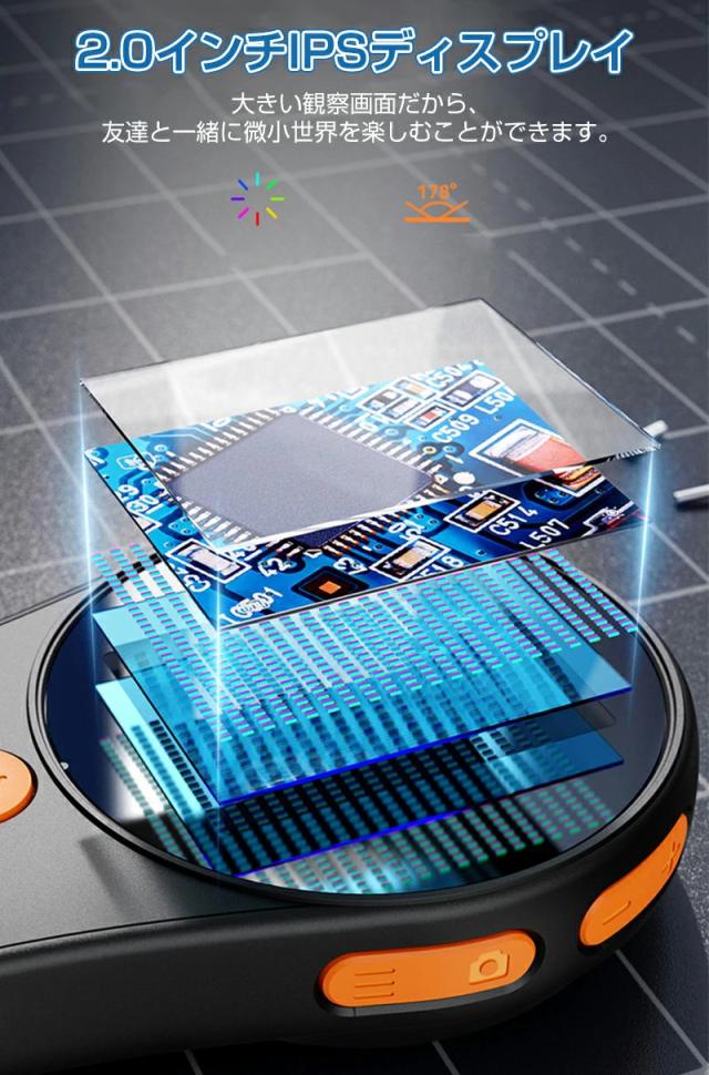 鮮やかな画面を表現し、HD2.0インチIPSの大画面ディスプレイでより鮮明に。LEDライトやスパイラルズーム付きでさらに観察しやすくなります。さらに光学ガラスを採用し、大画面で見やすく、お子様の目にも優しい設計となっております。