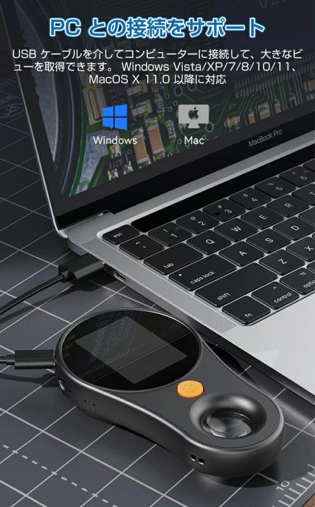 1080P&200万画素で高画質。砂、石のファセット、昆虫の触覚、赤血球、植物の表面、動植物の細胞などを観察することができます。標本なしでも直接観察でき、さらに写真・動画撮影も可能です。