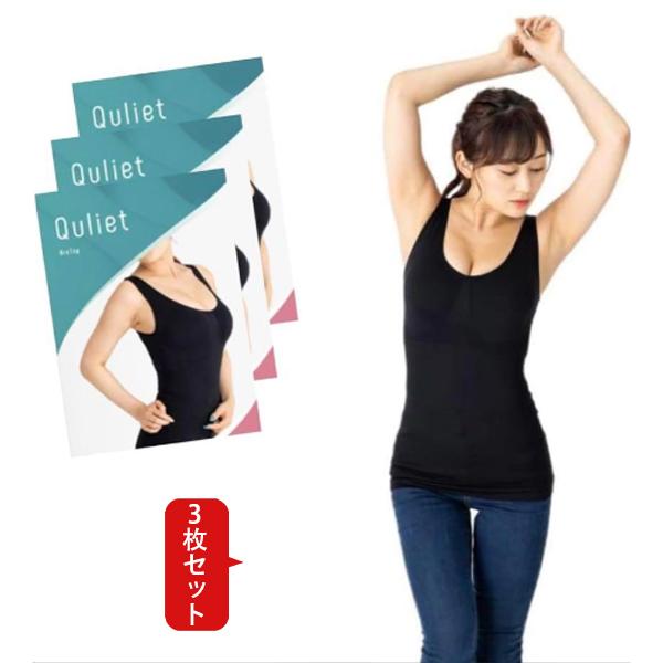 翌日発送 3枚セット キュリエット ブラトップ タンクトップ フリーサイズ Quliet BraTop インナー 加圧 トータルケア シャツ 補正下着 程よいくびれ ダイエット フィット感 ソフト 通気性 快適 バスト ボディケア 脇肉 背肉収める ノンワイヤー レディース カロリー消費UP