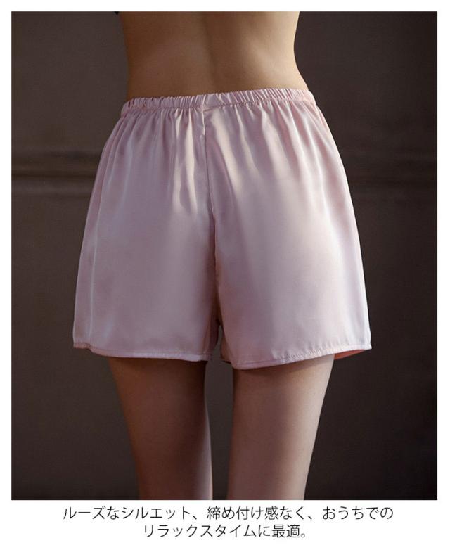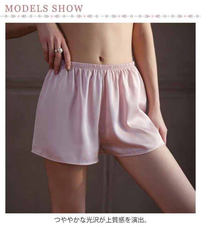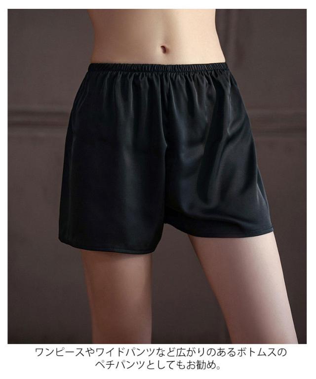 | ルームパンツとして活躍できるトランクス。 つややかな光沢が上質感を演出。 滑らかな風合いで肌に優しく、シルクライクな肌触りが特徴。 ルーズなシルエット、締め付け感なく、おうちでのリラックスタイムに最適。 ワンピースやワイドパンツなど広がりのあるボトムスのペチパンツとしてもお勧め。 | |