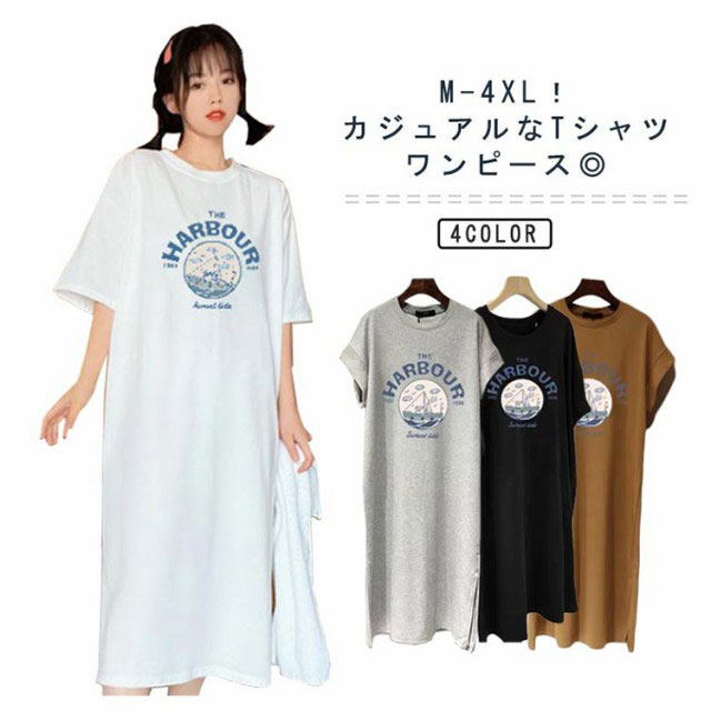 | M-4XL!カジュアルなTシャツワンピース◎ 裾サイドにスリットが入っているのでチラッと脚見えが可愛く重たくなくすっきり着て頂けます♪ リラックスワンピースでゆったり楽ちんにおしゃれ出来ます◎ | |