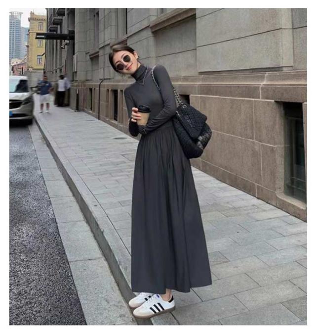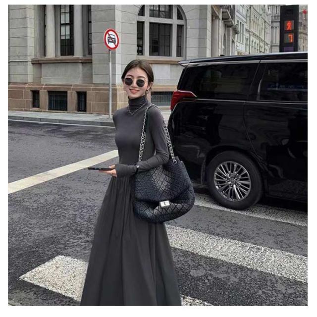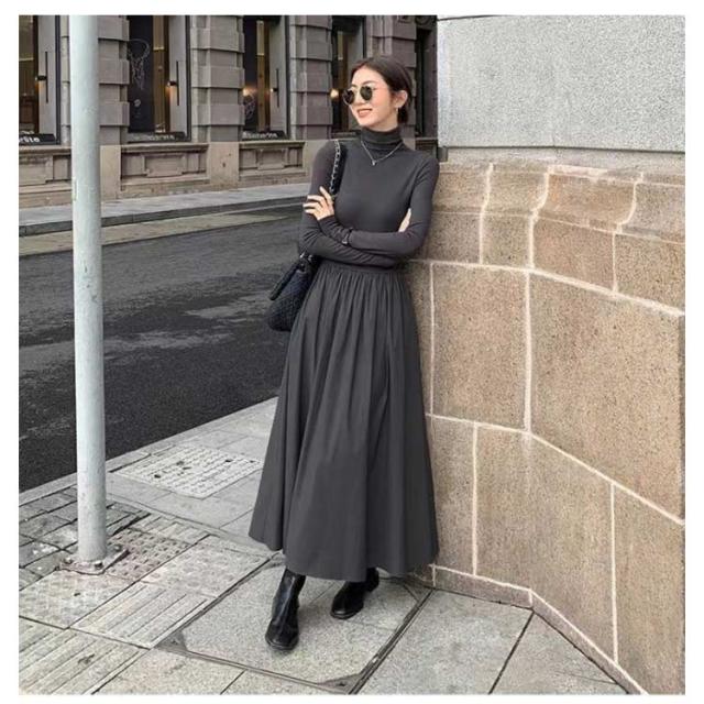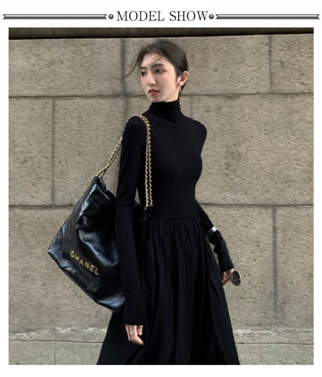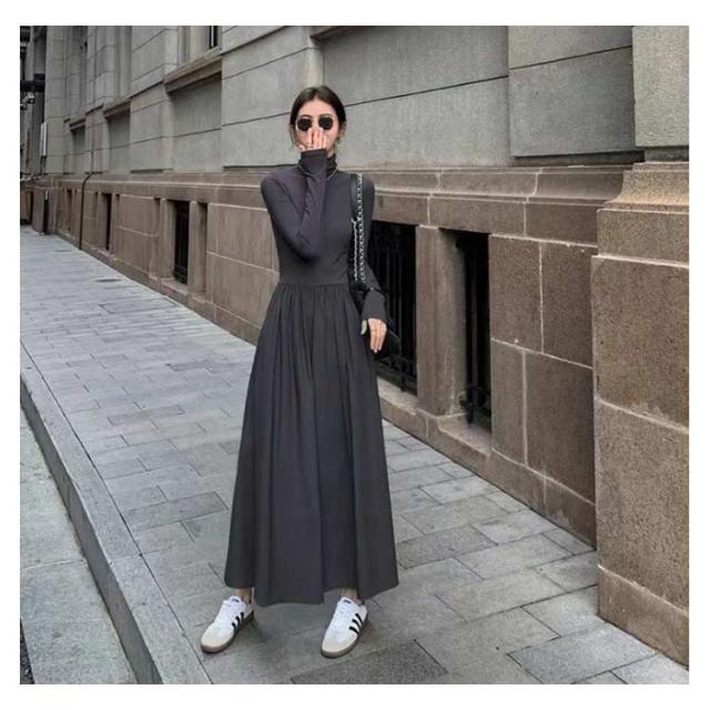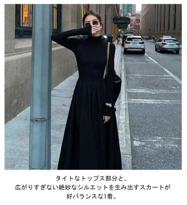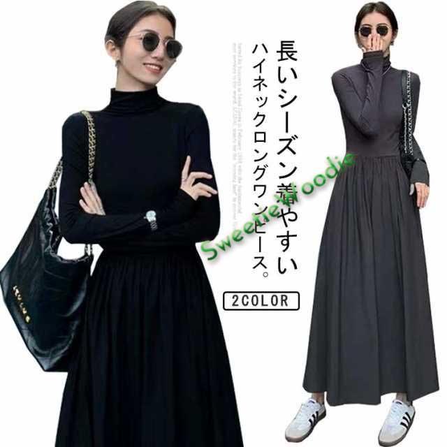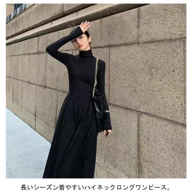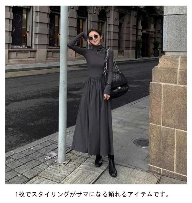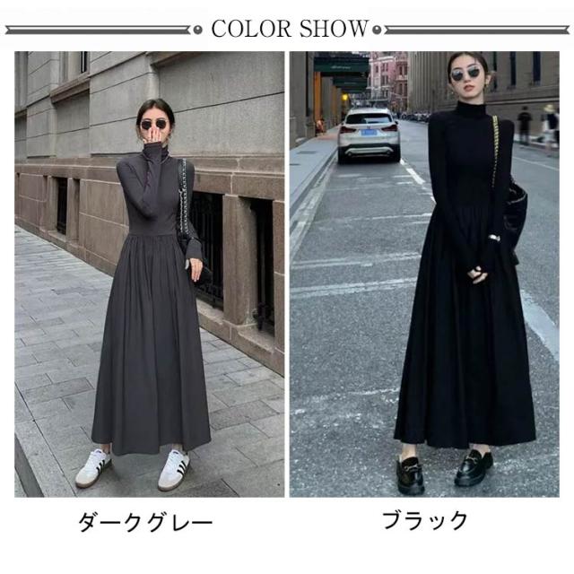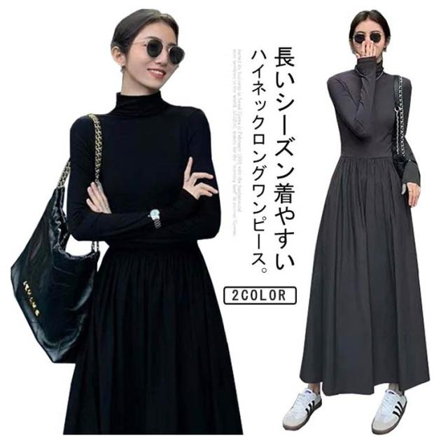ワンピース ハイネック ワンピース ロングワンピース 長袖 マキシ丈 Aライン マキシワンピース タイト レディース フレアワンピース インナー ロング丈 きれいめ カジュアル 無地 秋 冬 おしゃれ 着痩せ 体型カバー