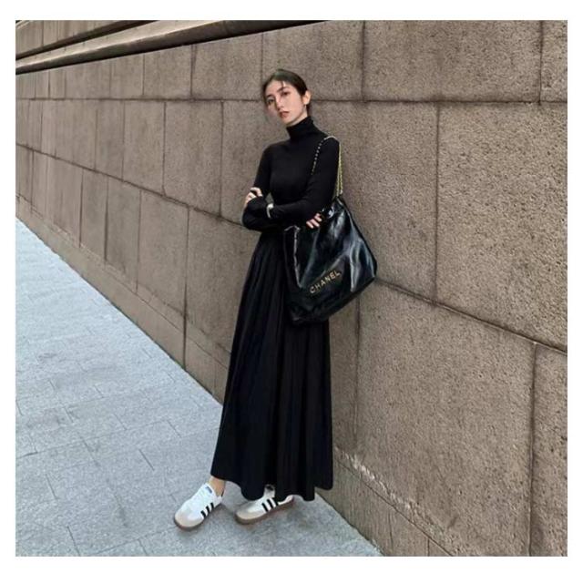 | 長いシーズン着やすいハイネックロングワンピース。 タイトなトップス部分と、広がりすぎない絶妙なシルエットを生み出すスカートが好バランスな1着。 1枚でスタイリングがサマになる頼れるアイテムです。 | |