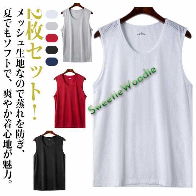 アンダーウェア タンクトップ 夏服 袖なし メッシュ tシャツ スポーツ 2枚セット!ノースリーブ 通気速乾 インナー インナーシャツ トレーニング メンズ 薄手 肌着 レイヤード 重ね着 スポーツ 2枚セット!ノースリーブ ランニング ゴルフ 野球