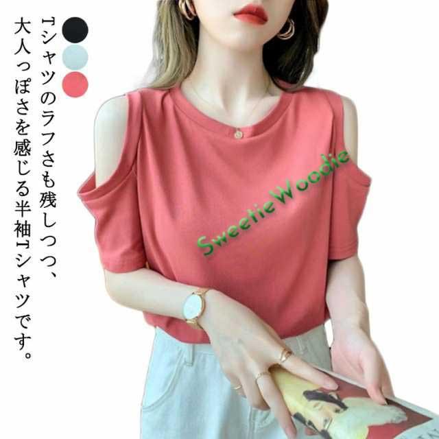 Tシャツ クルーネック 半袖Tシャツ レディース 肌見せ 半袖Tシャツ 無地 オフショル 肩出し 肩あき 半袖 トップス ゆったり ビッグシルエット 可愛い オフショルダー お洒落 キレイめ