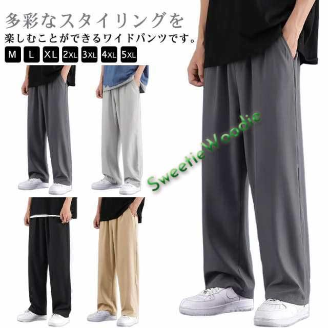 カジュアル ロングパンツ 無地 ズボン ワイドパンツ ストレートパンツ イージーパンツ 薄手 アイスシルク ワイドパンツ メンズ ジャージ下 接触冷感 通気速乾 春夏秋 大きいサイズ 夏服 スポーツパンツ