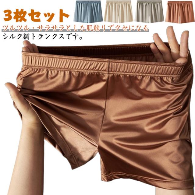 メンズ トランクス メンズ下着 ボクサーパンツ ゆったり ひんやり 3枚セット 夏用 インナー アイスシルク ボクサーパンツ 3枚セット 光沢 柔らかい シルク調 ツルツル 涼しい 通気 速乾 シンプル 下着 パンツ 大きいサイズ 父の日 プレゼント
