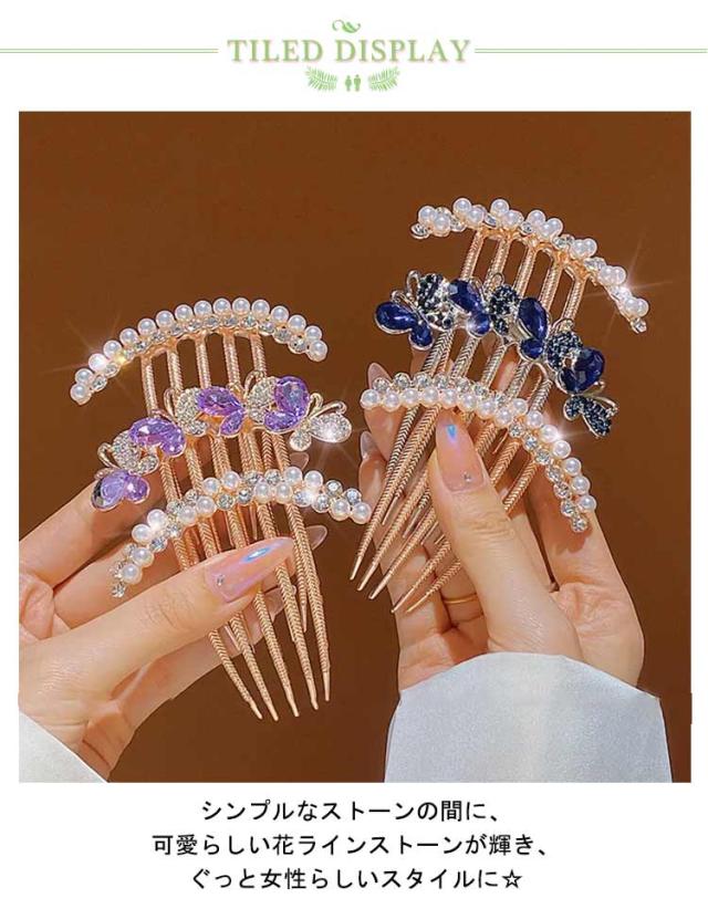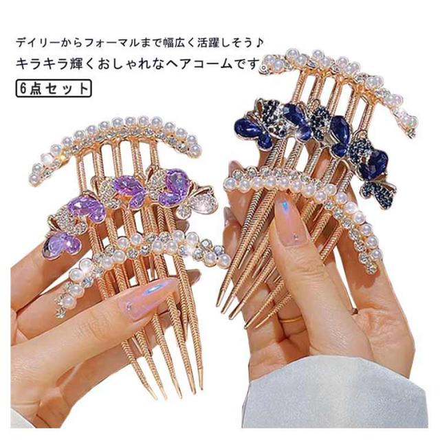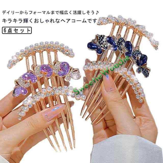 夜会巻きコーム 髪飾り ヘアコーム キラキラ 髪留め ヘアコーム ビーズ ラインストーン ヘアアレンジ 花 フラワー ヘアアクセサリー 6点セット ヘアクリップ ヘアアクセサリー 女性用 ヘアアクセ コーム かわいい おしゃれ 華やか 上品 エレガント