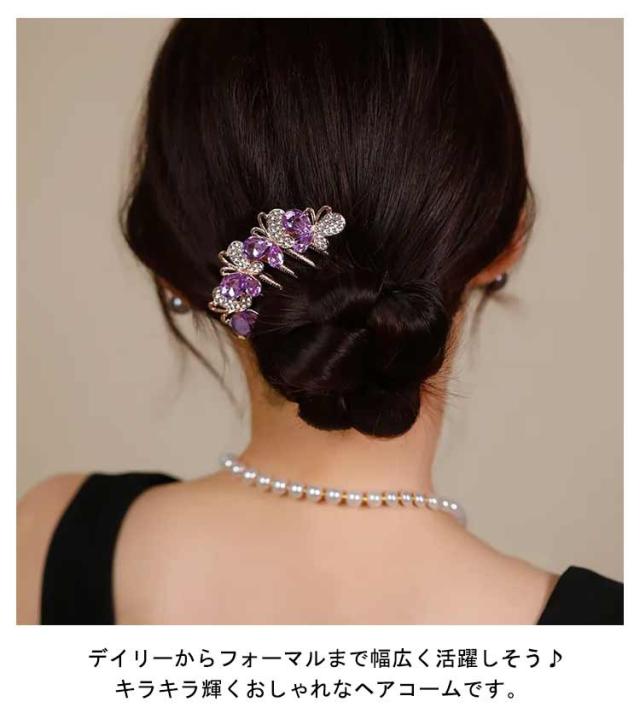| デイリーからフォーマルまで幅広く活躍しそう♪キラキラ輝くおしゃれなヘアコームです。 シンプルなストーンの間に、可愛らしい花ラインストーンが輝き、ぐっと女性らしいスタイルに☆ 幅広コームで、夜会巻きなどのアップスタイルをしっかりキープ!! パーティーや結婚式などのお呼ばれシーンや和装スタイルの式イベントなど、1つは持っていたいアイテムですね☆ ラフにまとめたお団子ヘアやまとめ髪のアクセント使いにぴったりです。 | |