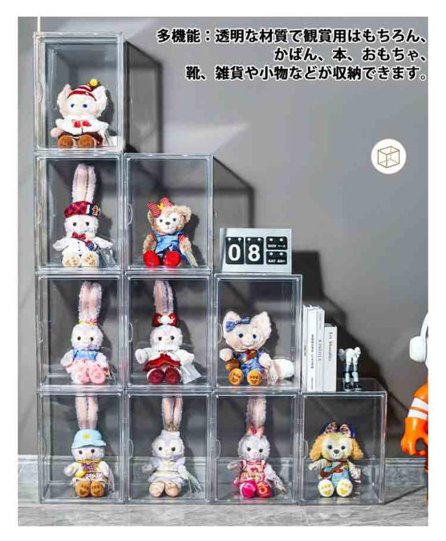 ぬいぐるみ収納ケース シューズボックス クリア 透明 スニーカーボックス ぬいぐるみ 収納ボックス スニーカー 収納ケース バック収納 ケース 棚 箱 収納 ケース フィギュアケース コレクションケース 展示用 ウインナーケース