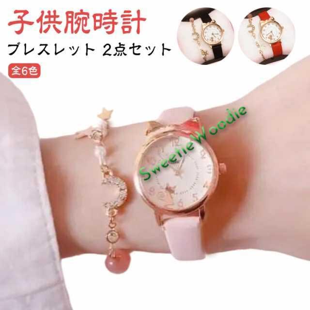 リストウォッチ ブレスレット 腕時計 キッズ腕時計 2点セット 時計 キッズ かわいい 子ども 防水 中学生 女子 子供用腕時計 小学生 女の子 子供 子供 ギフト プレゼント ジュニア ガールズ おしゃれ 誕生日 ウォッチ