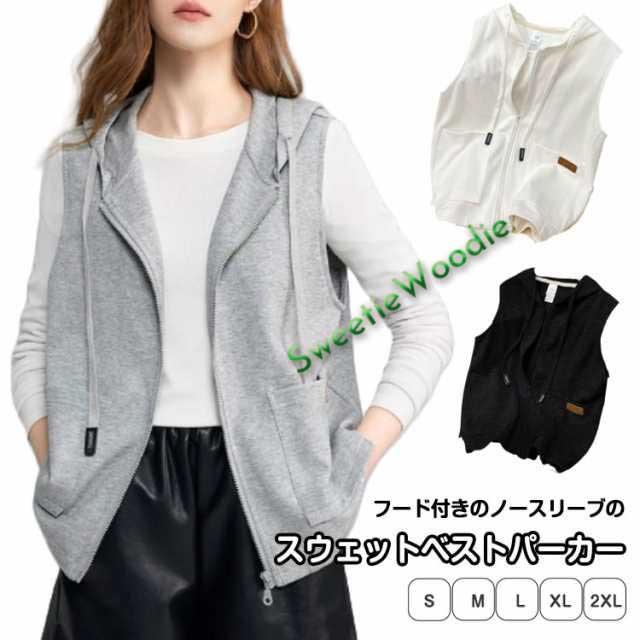 長袖 レディース スウェット ジップアップパーカー アウター ノースリーブパーカー ゆったり トップス ベスト フード付き スウェット 重ね着 ジレ ライトアウター パーカーベスト 無地 ポケット付き お洒落 カジュアル 体型カバー 大人 春秋 春服 秋服