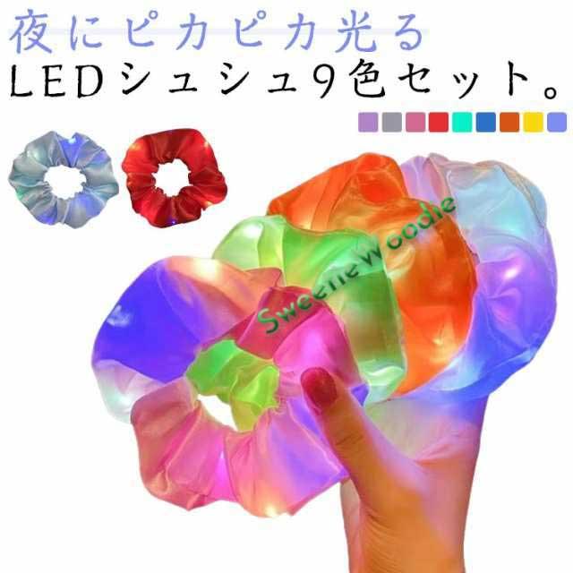 光るシュシュ 9色セット ヘアアクセサリー 子供 ハロウィン 大人 ヘア LED 夏祭り 盆踊り 光る お祭り きれい クリスマス パーティー ヘアゴム かわいい 手首 ブレスレット 雑貨 夜 事故防止 仮装