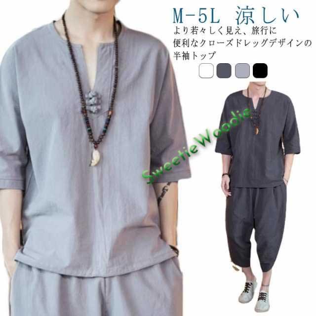 甚平 メンズ パジャマ セットアップ 綿 麻 男性 半袖 7分丈 サルエルパンツ 綿麻上下セット 涼しい セットアップ メンズ ワイドパンツ 上下 ルームウェア 半袖 薄手 Tシャツ パンツ 部屋着 ルームウェア 寝巻き 入院 夏 涼しい プレゼント 父の日 ギフト