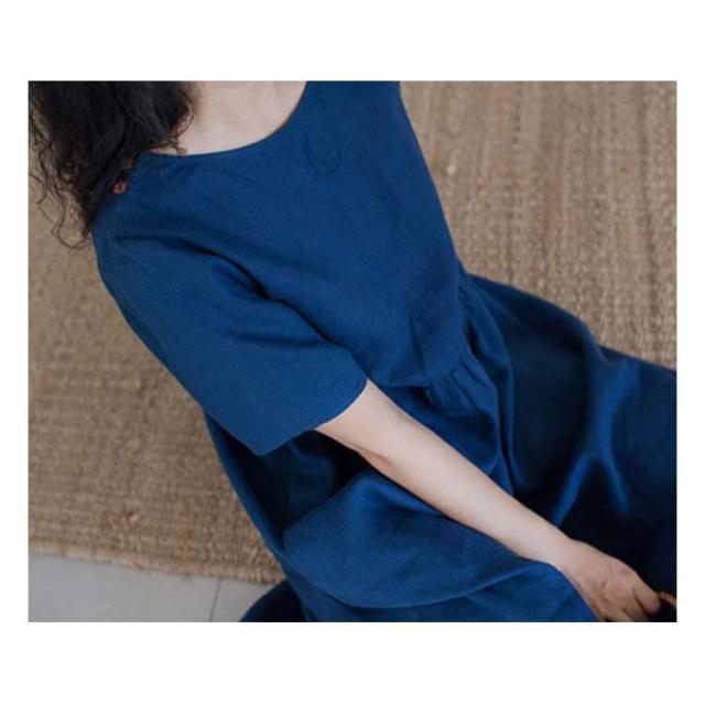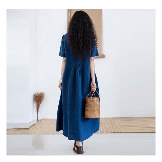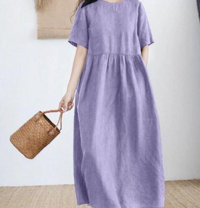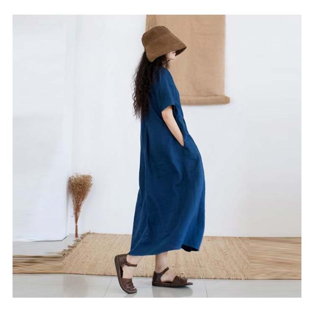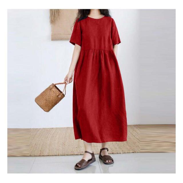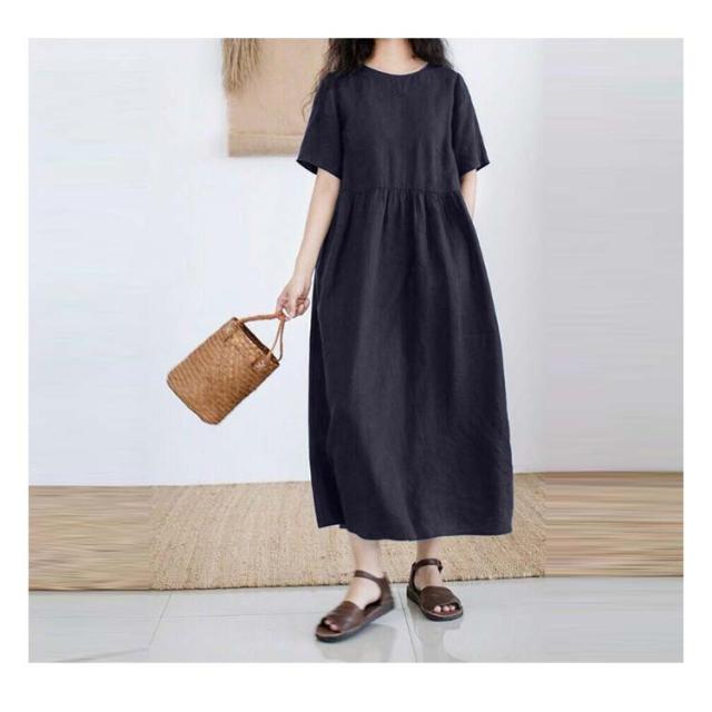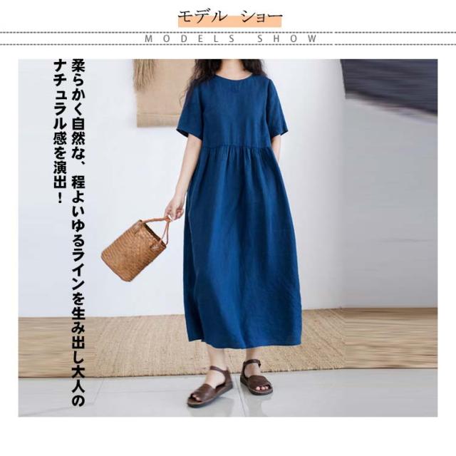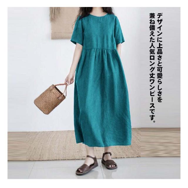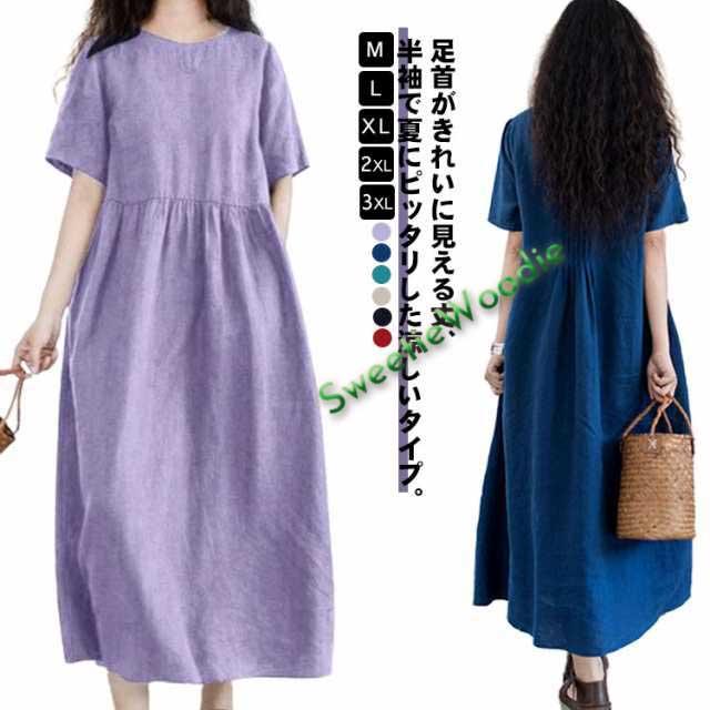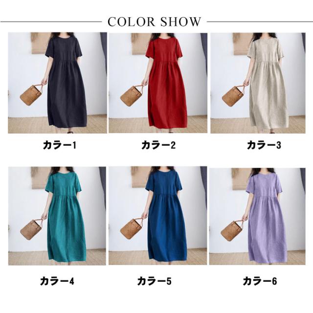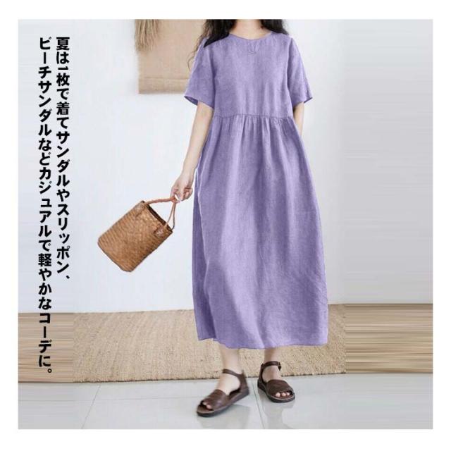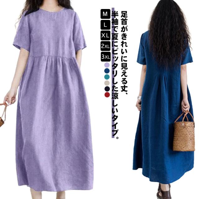 半袖 夏 リネンワンピース 薄手 シンプル 綿麻ワンピース Aライン レディース 綿麻ワンピース 無地 ワンピ 大きいサイズ ロングワンピース ワンピース 春夏 大人 可愛い 体型カバー 春