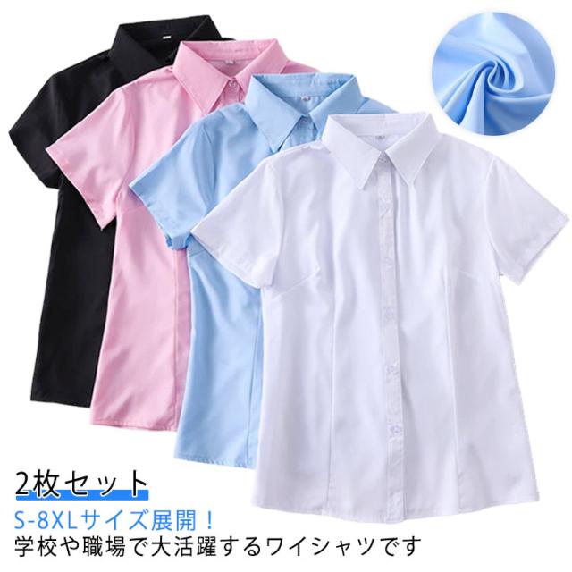 白シャツ 半袖 S 2枚セット 事務服 ワイシャツ レディース 半袖シャツ 大きいサイズ ブラウス リクルート ビジネス シャツ 就活 スーツ Yシャツ 制服 開襟 レディース 通勤 OL 薄手 2枚セット M L XL 2XL 3XL 4XL 5XL 6XL 7XL