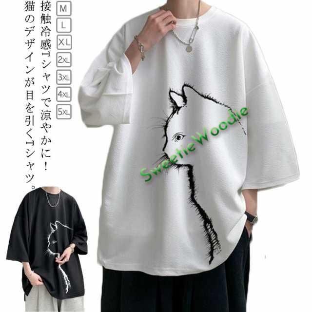 tシャツ 猫 無地 夏 メンズ ビッグTシャツ 猫 接触冷感 クルーネック ひんやり Tシャツ 冷感 可愛い 大きいサイズ トップス オーバーサイズ カットソー 猫柄 ギフト ゆったり 半袖 春 夏