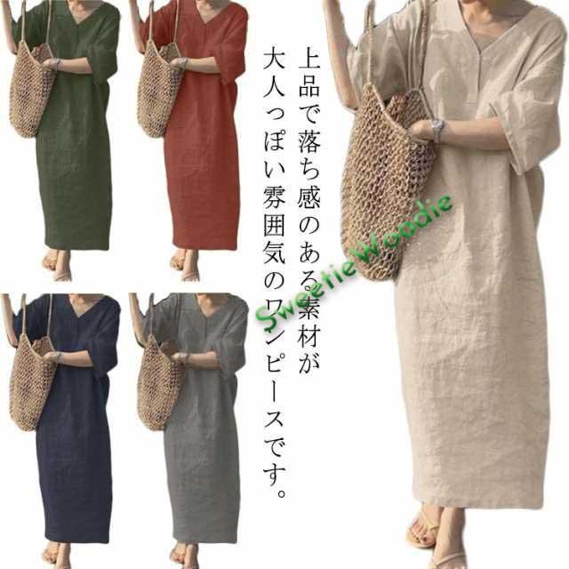リネンワンピース 二の腕 レディース ゆるワンピース春夏 ワンピース 春夏 綿麻ワンピース きれいめ ワンピース おしゃれ 可愛い 大人 お出かけ ロングワンピース 体型カバー Aラインワンピース 大きいサイズ カジュアル ナチュラル 森ガール 無地 S-5XL