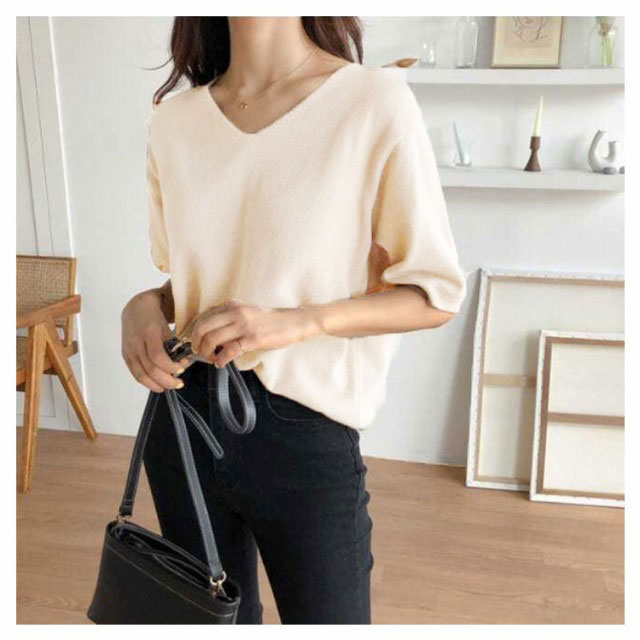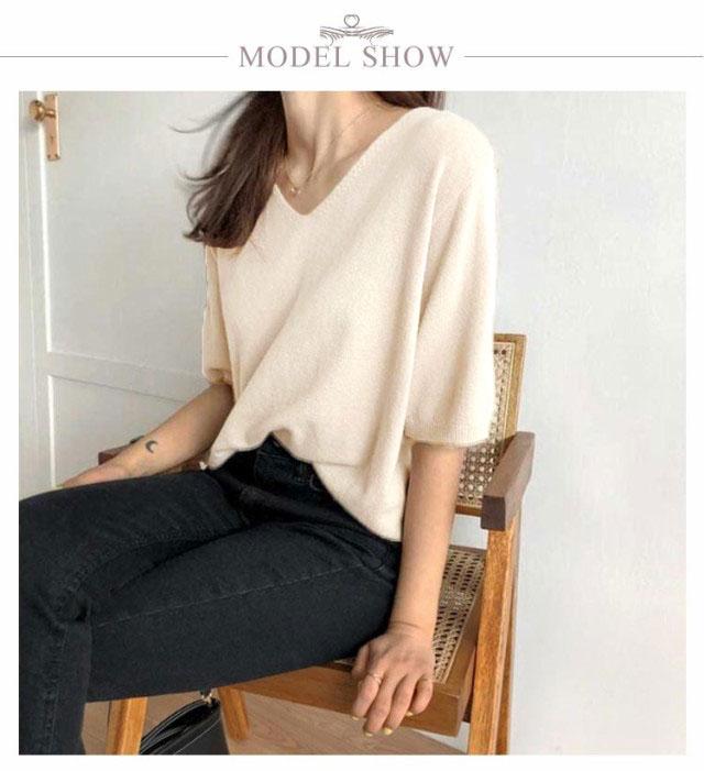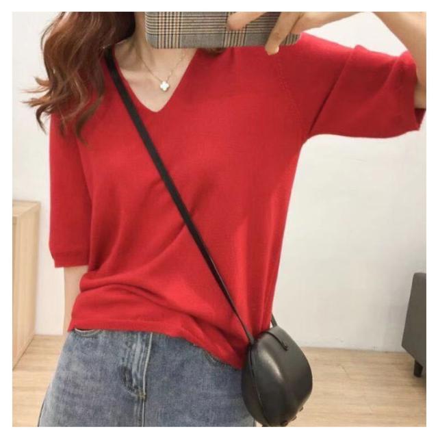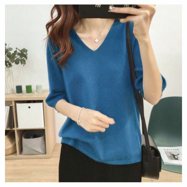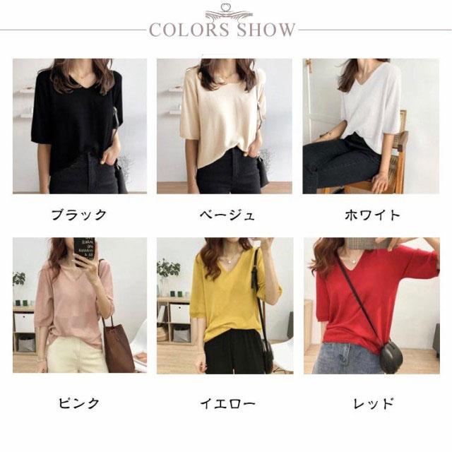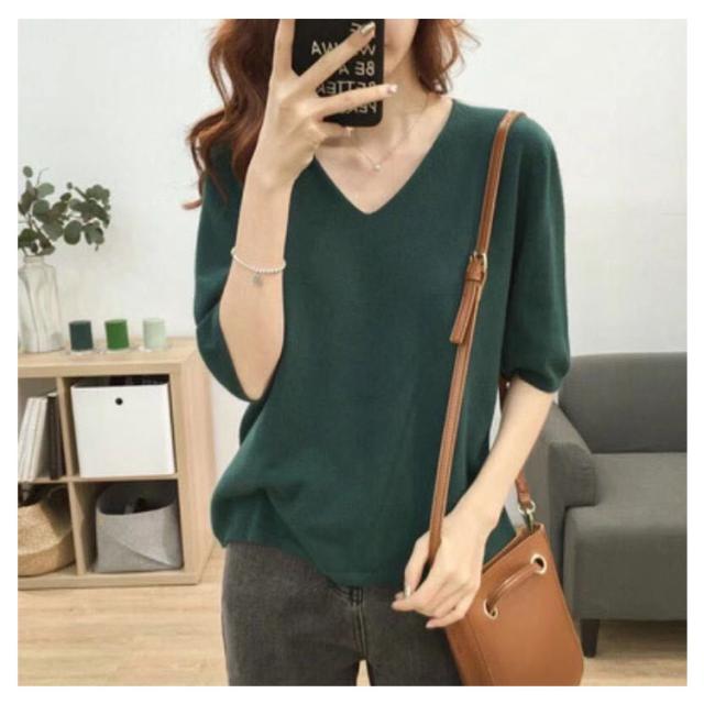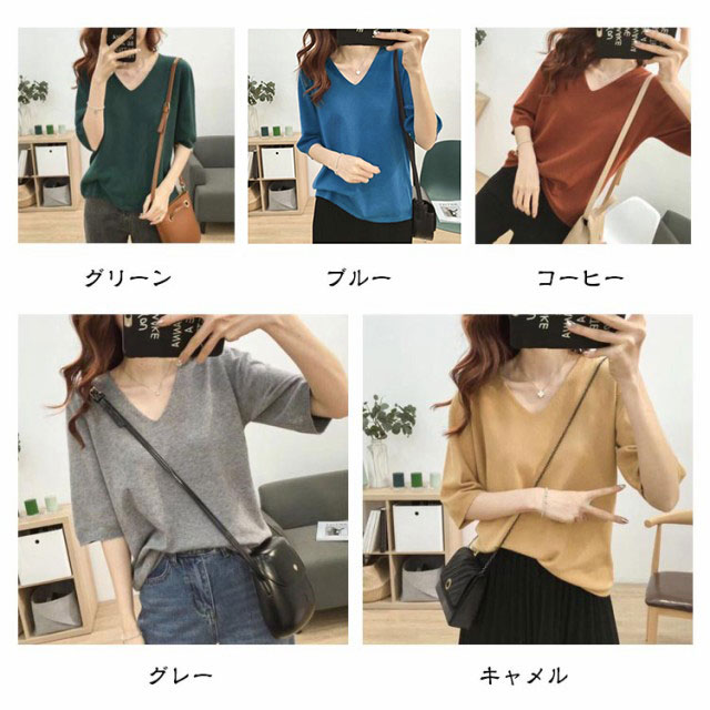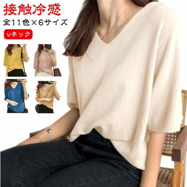 薄手 vネック カットソー 接触冷感 レディース ニットセーター 大きいサイズ Tシャツ サマーニット 大きいサイズ 七分袖 半袖 レディース ゆったり XL プルオーバー ニット vネック 春夏 おしゃれ