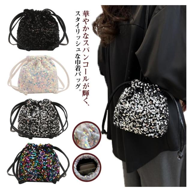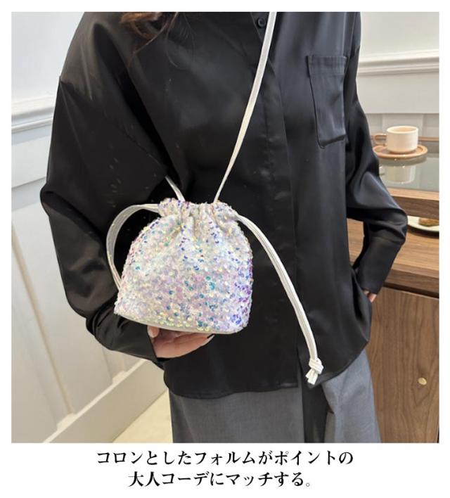 斜めがけ 高見え スパンコール バッグ ハンドバッグ ショルダーバック 大容量 2way コンパクト ミニトート ポイントバッグ バッグ 肩掛け スパンコール巾着バッグ スパンコール ファッション パーティー 二次会 軽量