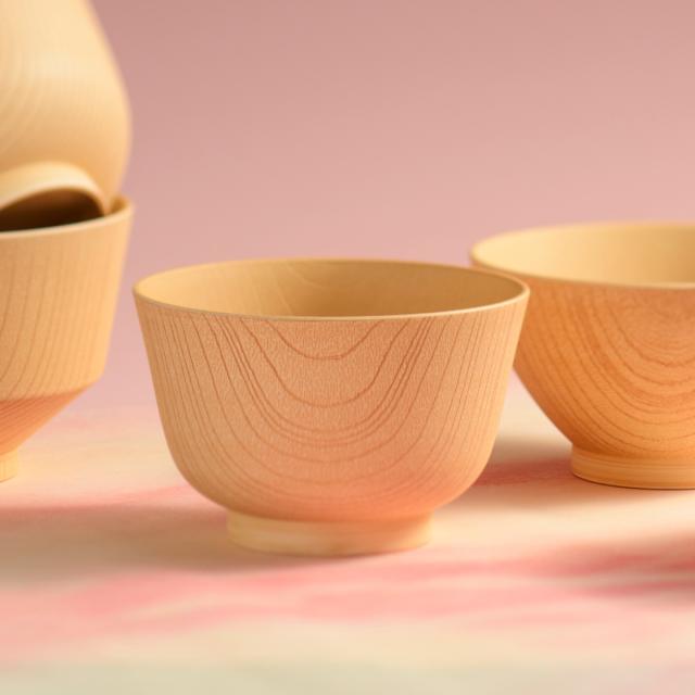 まる白木のような美しい木目デザインの汁椀です。軽くて割れにくく、扱いやすい樹脂製の食器なので毎日手軽にお使いいただけます。来客用から普段使いにも使えて、和でも洋でも合わせやすい汁椀です。