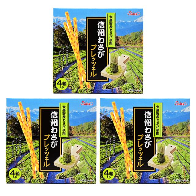 安曇野産わさび使用 信州わさびプレッツェル×3箱(送料込)(信州長野のお土産 お菓子 土産 おみやげ スナック菓子 山葵 プレッツェル プリッツ 長野限定 長野土産 長野お土産 通販)