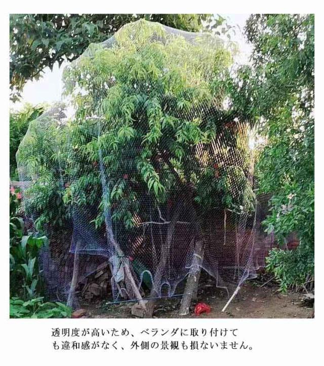 | 目立たない・高耐久防鳥ネット。 透明度が高いため、ベランダに取り付けても違和感がなく、外側の景観も損ないません。 20mm網目なので視界や日差しを遮らず、いつも快適なライフスタイルを送って頂けます。 小鳥対策用の小さな網目なので、スズメのような小鳥や鳩、ツバメ、ハト、カラス等害鳥、さらにコウモリなどの小動物も防ぎます。 マンションベランダに鳩が飛来を防止し、畑や菜園、農園、果樹園などで鳥による作物の被害防止対策に使われています。 必要なサイズにも自由にカットができ、様々な所でご使用が可能、利便性が高い。迷惑鳥の飛来防止や被害防止ももちろん、光の透過性や通気性が抜群です。 自宅のベランダ、お庭、花壇、ゴミ置き場はもちろん、鳥による家庭菜園、プランター、果樹園や菜園などの作物損失やいたずら防止として利用できます。また、ペットの猫や鳥などの家からの脱走防止としても利用できます。 | |