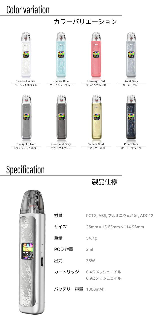さらに、2種類の吸引モードとエアフロー調整機能により、DL(ダイレクトラング)からMTL(マウストゥラング)まで幅広いスタイルに対応。
