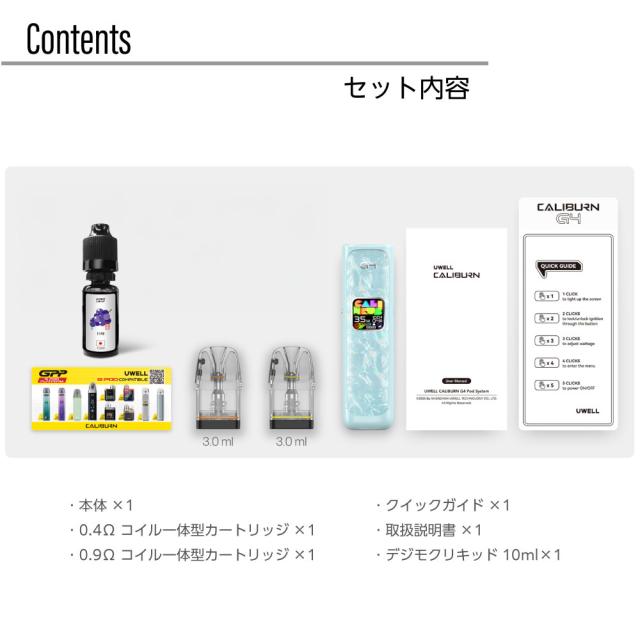 【最高峰の味わい】次世代PODデバイス『Caliburn G4』のリキッド5本セットです。 |
