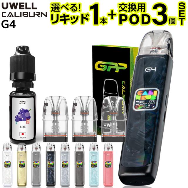 【最高峰の味わい】次世代PODデバイス『Caliburn G4』の交換用PODカートリッジ3個&リキッド1本セットです。 |