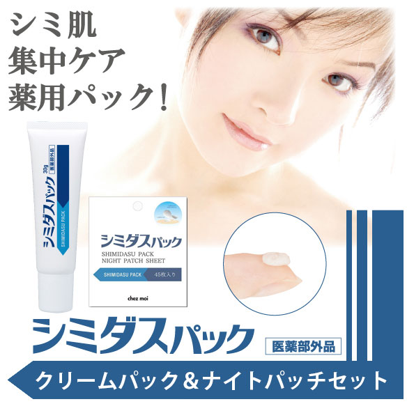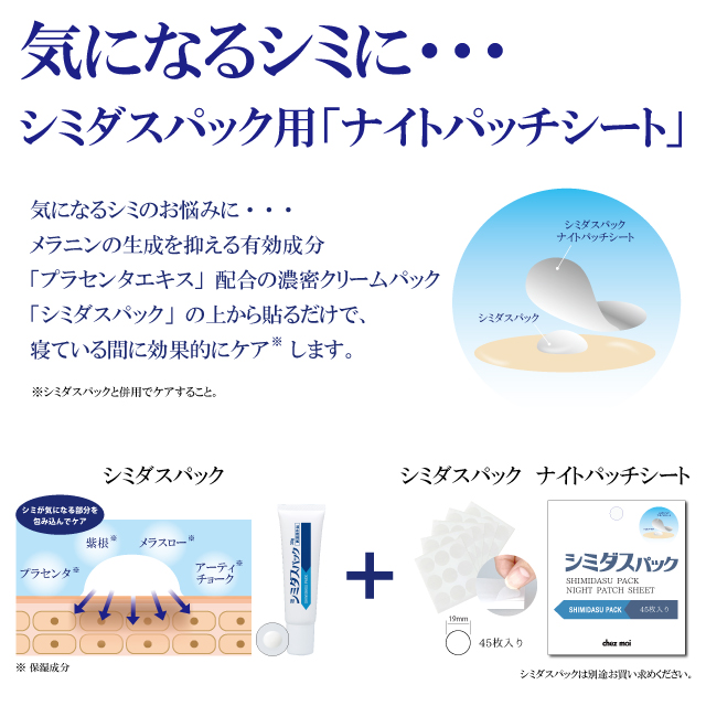 【オトクなセット】薬用シミダスパック 30g + シミダスパック ナイトパッチシート 45枚入 / 気になるシミにピタッと密着!シミケア シミ消し シミ対策 シミ取り 肝斑 シミ取りクリーム 集中ケア プラセンタ クリーム パック