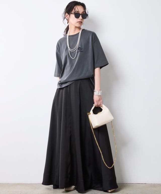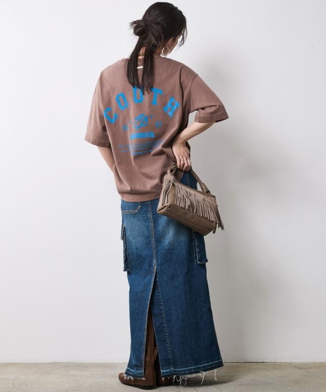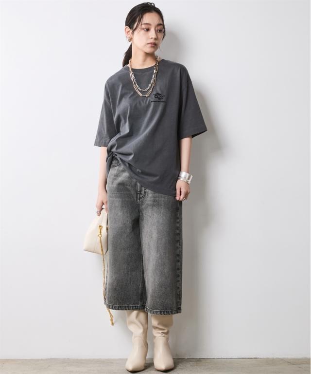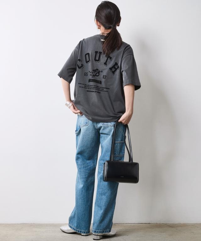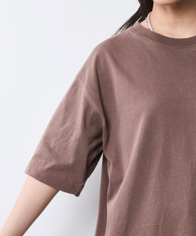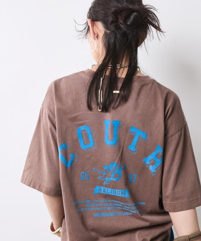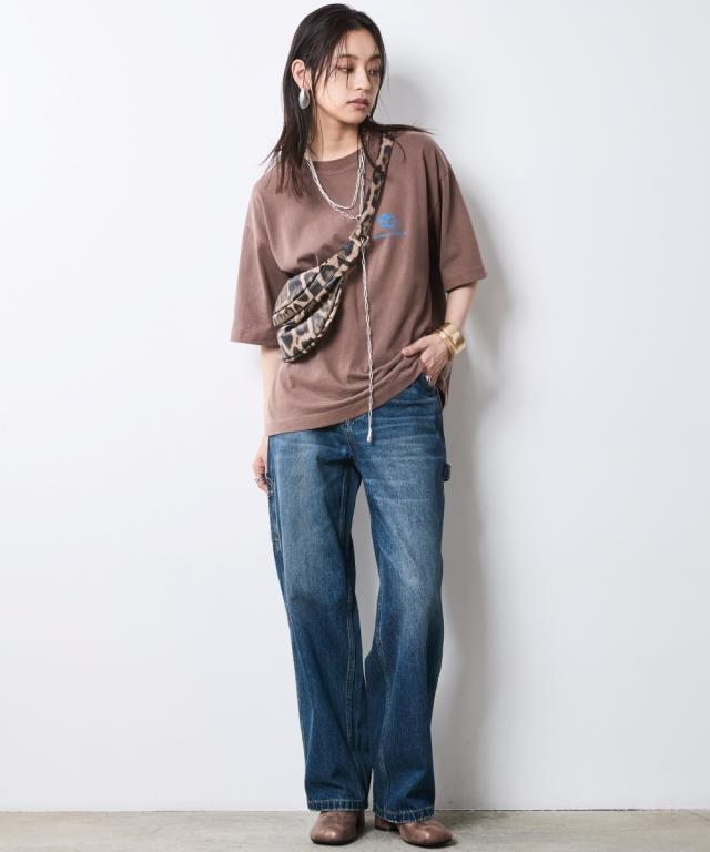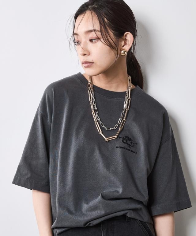 着るだけでこなれる!ピグメント染ヴィンテージ風ロゴプリントTシャツ。 ■デザイン 独特な風合いが魅力のピグメント染を施したTシャツ。 加工によるビンテージライクな色ムラとあたり感が着慣れたようなこなれ感を演出します。 バックにはインパクトのあるロゴと天使モチーフがフロッキープリントされており後姿もぬかりなくおしゃれ。 ※ピグメント染めは、顔料を使用して生地の表面に色をつける染色方法で、独特のヴィンテージ感や風合いを楽しむことができます。 繊維の内部に色が浸透せず、表面に色が乗るため、着用や洗濯を重ねることで自然な色落ちが楽しめます。 フロントにも天使プリントが施されシンプルな中にもこだわりが光るTシャツです。 ゆったりとしたサイズ感でリラックスしてご着用いただけます。 ■素材 肌ざわりのいい、綿100%の天竺生地を使用。 ■おすすめのスタイリング デニムボトムとの相性はもちろん抜群ですが、大人フェミニンなサテン生地のスカートやインパクトのあるレオパード柄のスカートと合わせたミックススタイルもオススメです。